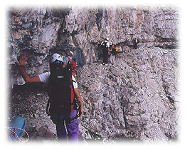 circa 10 metri. Si prosegue a destra per cengia (dapprima