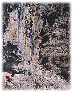 Perugini lungo la Val Montanaia, circa a quota 1800 metri,